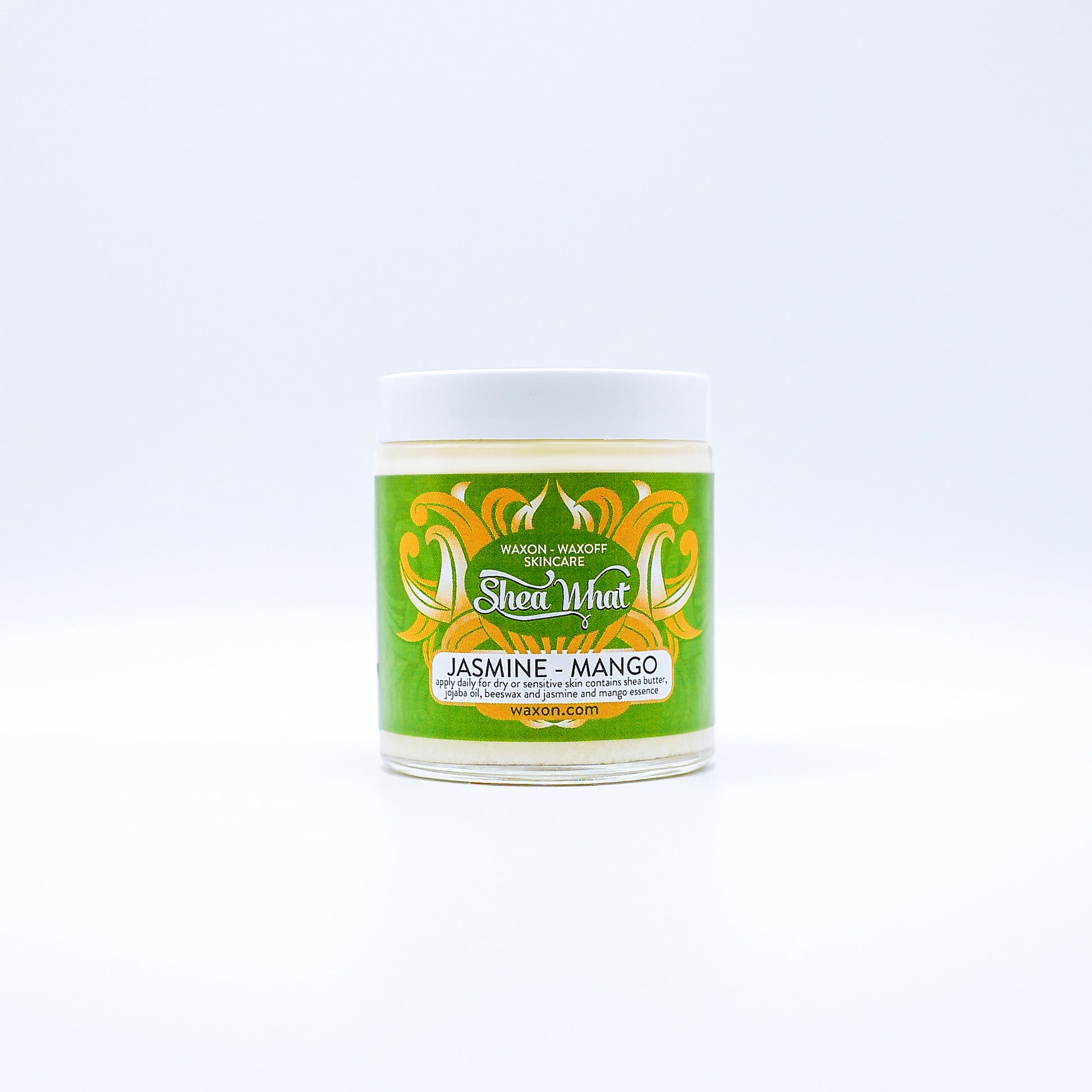 Apply liberally to the skin and hair, morning and night. Contains shea butter and beeswax and jasmine and mango essences.